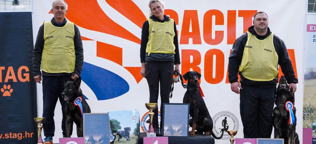 Asha’s work finally came together in one competition. We won CACIT Croatia, with Best track – 97 – and Best protection – 90 . A little disappointed with obedience, she didn’t do stand out of motion, so we only got 81 points.